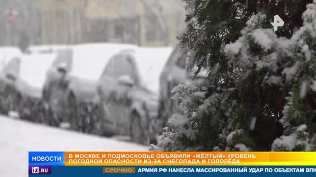 В Москве и области объявили желтый уровень погодной опасности. Уже сейчас местами идет мокрый снег, к вечеру на дорогах будет очень скользко.