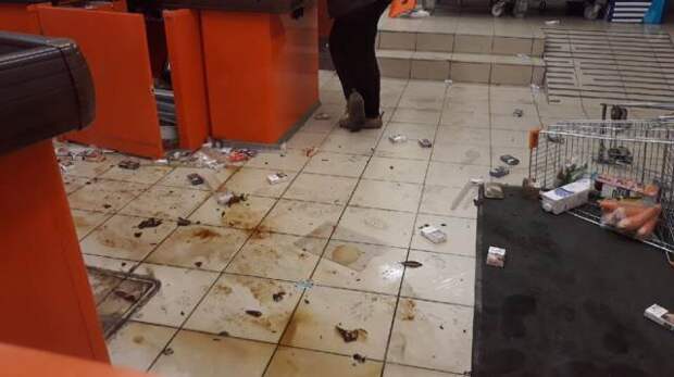 Мужчина разгромил супермаркет в подмосковном Климовске. По словам очевидцев, дебош начался с неудачной попытки воровства. Охранники заметили, как посетитель прячет в карманы продукты и средства женской интимной гигиены.
