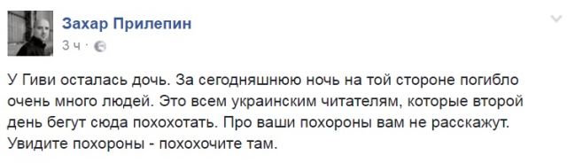 Писатель Захар Прилепин обратился к тем, кто глумится над гибелью комбата Гиви в ДНР. Запись он сделал в своем Facebook.
