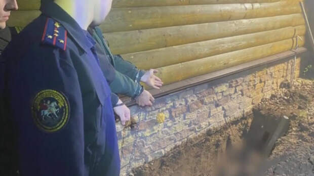 Кадры с ним обнародовал СК. На них видно, что мужчину привезли в сарай, в котором он закопал тела своих жертв.