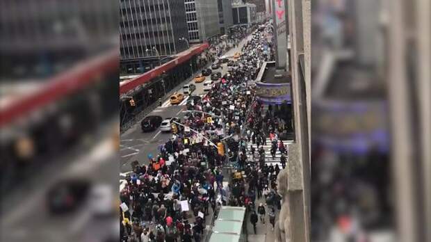 Очевидцы сняли на видео акцию протеста против президента США Дональда Трампа, которая проходит в Нью-Йорке.