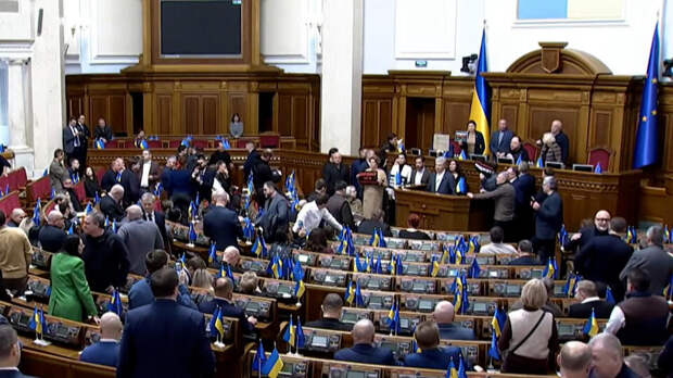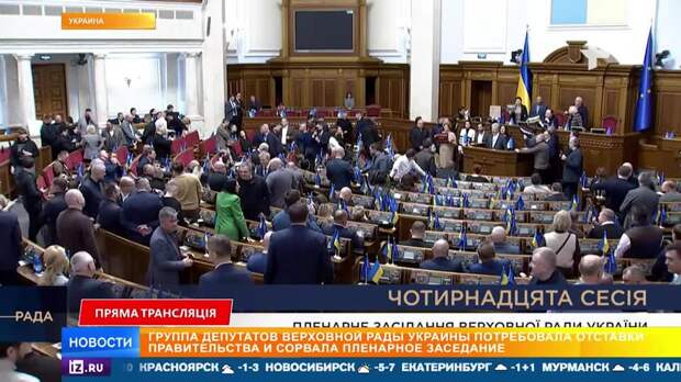 "Уряд геть" ("Правительство прочь" – прим. РЕН ТВ)", – выкрикивают депутаты, поднявшиеся на трибуну.
