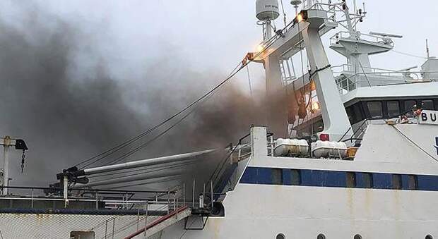 По данным ведомства, траулер находился в норвежском порту на ремонте. Предположительно, пожар случился во время сварочных работ.