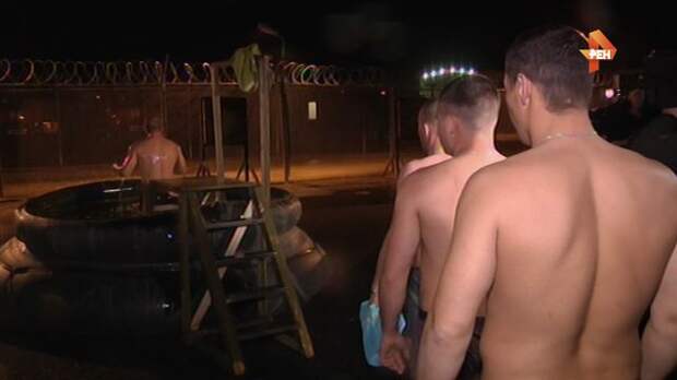Российские военные, проводящие спецоперацию в Сирии, присоединились к православным по всему мира, празднующим сегодня Крещение Господне. Солдаты окунулись в специальные освященные армейские резервуары с водой.