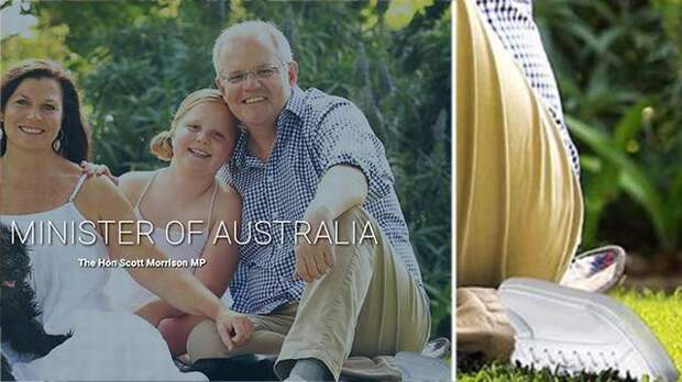 Премьер-министр Австралии Скотт Моррисон отреагировал на казус с неудачным семейным снимком, на котором сотрудники правительства, пытаясь "заменить" ему обувь, нечаянно поменяли правую ногу на левую.