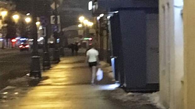 Очевидцы засняли на видео мужчину, который прогуливался по Москве в футболке и шортах. В то время, как МЧС объявило в столице экстренное предупреждение в связи с надвигающейся метелью и мокрым снегом.