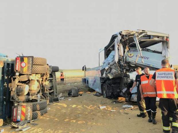 В департаменте Эна на севере Франции произошла авария с участием пассажирского автобуса и грузовика.