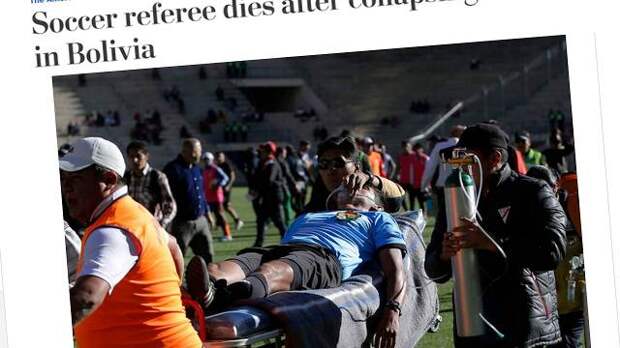 Судье стало плохо на 47-й минуте матча на стадионе в Эль-Алато, который расположен на высоте 4 тысячи метров над уровнем моря.