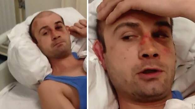 При этом сам мужчина утверждает, что совсем не помнит, как ему "сломали череп", но уточняет, что полицейские утверждают, что хулиган буквально прыгал и топтался по его голове.