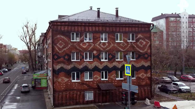 Самый уютный на вид дом появился в Тюмени. Здание бывшего советского общежития геологов там "одели" в свитер.