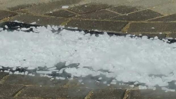 Резиновую дорожку наполовину засыпают сухим льдом. Через 5 минут на резиновой дорожке образовалась прочная наледь, которая хорошо сбивается лопатой.