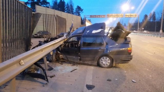 На фотографиях с места преступления видно, что машина получила серьезные повреждения и превратилась в груду металла. По предварительным данным, авария произошла вечером 15 апреля на 51-м километре автодороги.