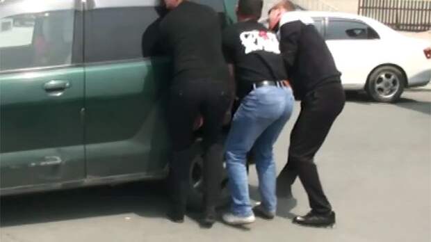 Парни решили проучить даму другим способом."Мы вам не может дать уехать отсюда. Сотрудники полиции уже сейчас подъедут. Мы вам не дадим уехать", - заявил активист.