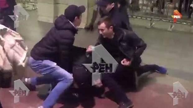 РЕН ТВ публикует кадры задержания двух дебоширов в Москве на станции метро "Серпуховская".