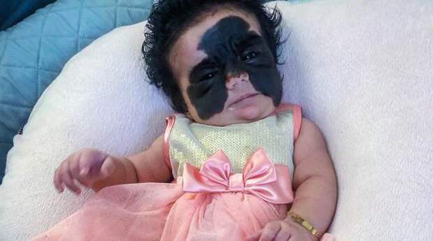 Ребенок появился на свет с редчайшим меланоцитарным невусом лица: родимое пятно черного цвета распространилось почти на всем лице малышки.