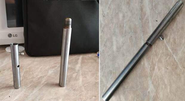 В деревянном шкафу обнаружили металлический стержень, оказавшийся при ближайшем рассмотрении самодельным стреляющим устройством. Правоохранители отмечают, что "оружие" кустарной выделки было пригодно для стрельбы боевыми патронами.