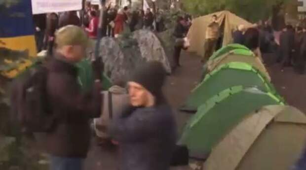 Активисты разбили палаточный лагерь у стен Рады и остались там на ночлег.