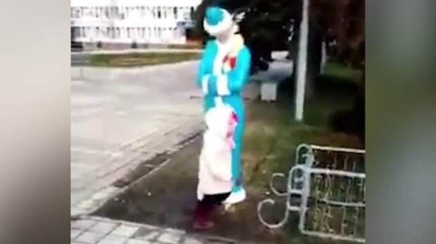 В какой-то момент девочка подбежала к Снегурочке и толкнула ее, а у той неожиданно отвалилась голова.Упавшая голова чуть не задела ребенка.