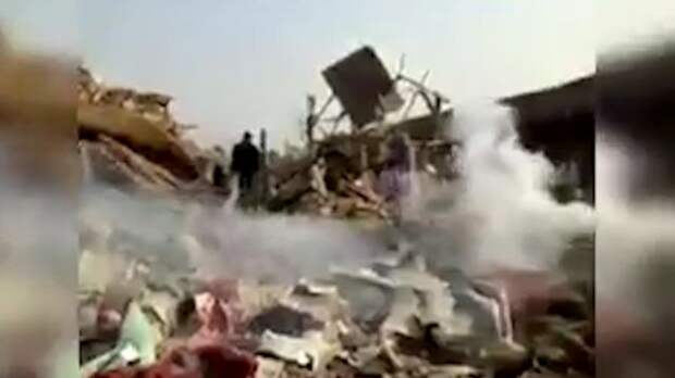 Появилось видео с места взрыва фабрики пиротехники в китайской провинции Хэбэй.