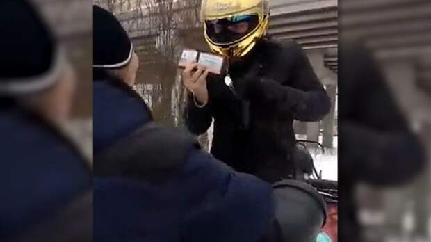 На снятом очевидца видео, можно увидеть, как юноша в желтом шлеме, позади которого на квадроцикле сидит пассажирка, показывает возмущенным прохожим некое удостоверение."Вообще безобразие полное!", - восклицают очевидцы.