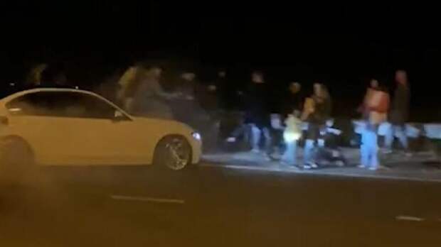 В Екатеринбурге во время ночных гонок на ЕКАД машина врезалась в зрителей. Кадры с места показали очевидцы.
