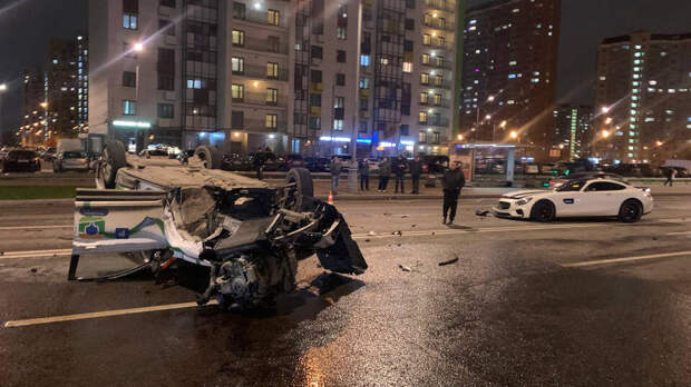 На окраине столицы немецкий спорткар на высокой скорости протаранил попутный кроссовер, который от удара перевернулся и проскользил на крыше около ста метров. После этого, по словам очевидцев, владелец спортивной иномарки принялся спешно снимать номера с машины и, похоже, даже не подумал о том, чтобы помочь другому участнику столкновения.
