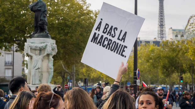 Французы в полный голос смеются над своим президентом и тычут в него пальцем, вдоль парижских бульваров портрет Макрона втыкают в то, что обычно остается после выгула домашних животных, чтобы каждый теперь почувствовал, как дурно теперь пахнет от французской власти.