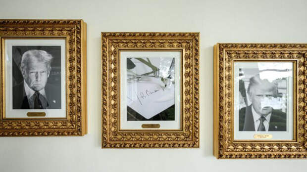 На фото, опубликованном на официальной странице Белого дома в соцсети Х, видно, что теперь между двух портретов самого Трампа висит изображение устройства, которое само оставляло за Байдена подписи.