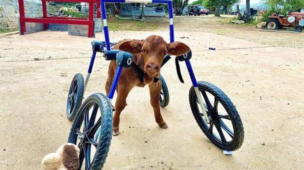 В США в городе Остин работники приюта для животных Safe in Austin, в котором оказывают помощь больным питомцам, спасли теленка со сросшимися задними ногами.