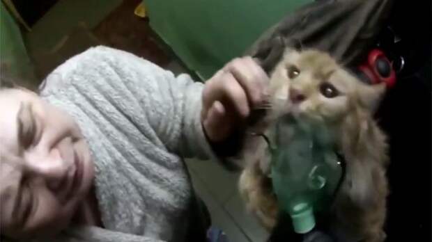 Всего через минуту бедняга начала дышать и открыла глаза. Сознание возвращается к животному медленно, она явно не понимает, что происходит, и с первых секунд чувствует угрозу, пытается атаковать кислородную маску, которая вернула ей жизнь. Пожарные решили отдать кошку хозяйке. Сама женщина осталась без крыши над головой, у нее сгорела квартира.
