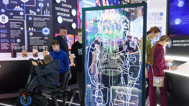 Посетители могут оказаться в кабине и познакомиться с Омском – городом, где производят ракетоноситель."Это 3D-медиакапсула, которая рассказывает про Омск, его яркие достопримечательности, особенности. Также гости могут виртуально погрузиться в атмосферу полетов в космос", – рассказала участница выставки.