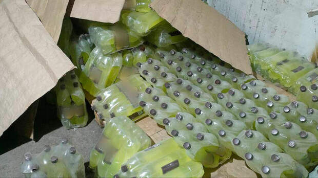 На складе полицейские обнаружили сотни канистр и бутылки уже готовых напитков сомнительного качества, которые в скором времени должны были попасть на полки местных магазинов – в общей сложности больше девяти тысяч литров.