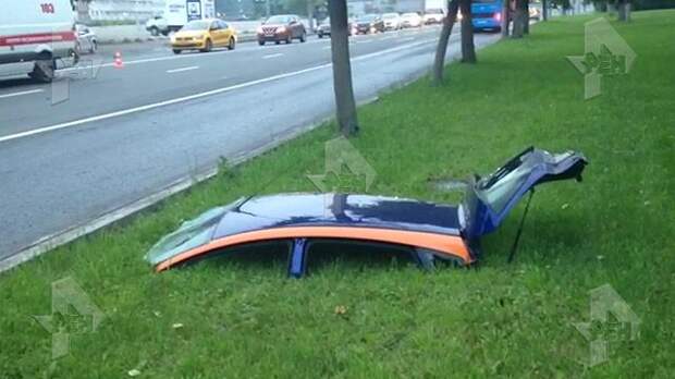 В распоряжении РЕН ТВ появилось видео с места ДТП на Люблинской улице в Москве. Там автомобиль наехал на мачту освещения.