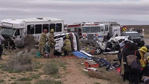В округе Сан-Бернардино, штат Калифорния произошло столкновение автобуса с двумя легковыми автомобилями, передает ТАСС. По информации агентства, как минимум один человек погиб, 21 пострадал.