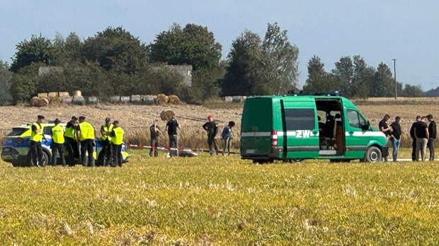 Rafal Niedzielski/AP/TASS Военный БПЛА потерпел крушение в польском городе Иновроцлав Куявско-Поморского воеводства. В результате падения дрона поврежден жилой дом и две машины, сообщили на странице Польского оборонного концерна PGZ в соцсети Х.