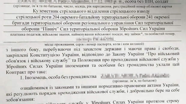 Согласно контракту, который с иностранными бойцами заключает ВСУ, наемникам обеспечивают защиту свобод и прав, а также надлежащую оплату труда.