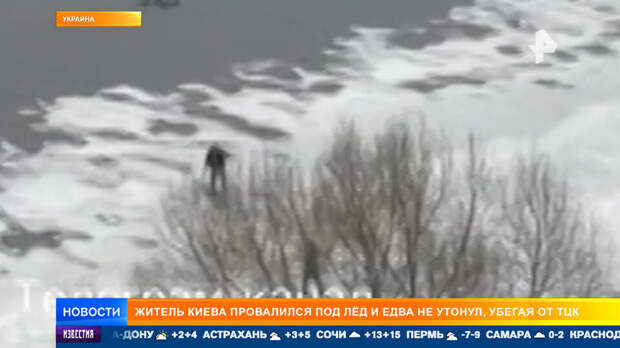 Мобилизованные украинцы рискуют погибнуть еще до того, как попадут на фронт. Так, в Киеве местный житель выскочил на лед, провалился под воду и едва не утонул, убегая от военкомов.