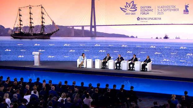 Пленарное заседание Восточного экономического форума (ВЭФ-2025) проходит 5 сентября. В нем принимают участие президент России Владимир Путин, премьер-министр Лаоса Сонсай Сипхандон, премьер Монголии Гомбожавын Занданшатар, член политбюро ЦК Компартии Китая Ли Хунчжун.