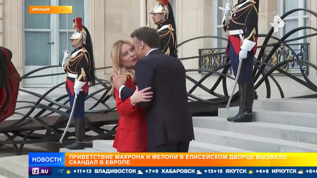 Он поцеловал ее в обе щеки и столь рьяно обнимал, что ей оставалось только нервно смеяться.Этим поведением Макрон не ограничился. Заходя во дворец, он взял Мелони под руку, а потом погладил по спине.
