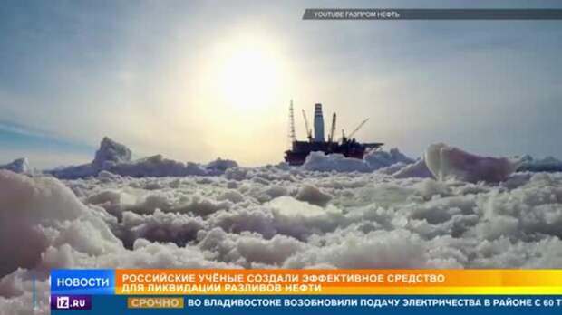 Российские ученые разработали диспергент для северных морей, где сейчас активно идут поиск и разработка нефтяных шельфовых месторождений. Для этого им пришлось создать Арктику в миниатюре. Из Баренцева моря в московский институт доставили 400 килограммов льда и 10 тысяч литров воды. Совместная разработка МФТИ и "Газпром нефти" показала отличные результаты.