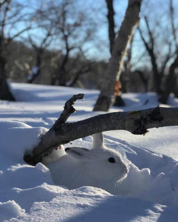 Сотрудники исследуют следовые дорожки зверей, чтобы установить их численность и распределение по территории."У зайцев-беляков сейчас проходит брачный период, и они немного расслаблены. И, конечно, звери не сомневаются, что их совершенно не видно на фоне снега, а потому и не боятся наблюдателей", — сказано в посте.