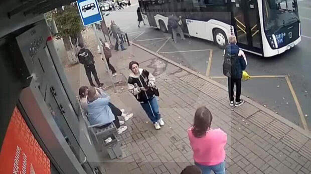 На кадрах видно, как мать с ребенком бегут на автобус. Женщина помогает сыну взбираться на ступеньку, но в этот момент водитель закрывает двери и начинает движение.