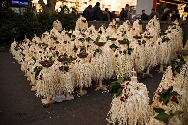 5 января в домах готовят обед: постный плов с изюмом, курагой, рыбой и шпинатом. В этот день, который называют чрагалуйц, в храмах зажигают лампады и свечи, поют гимн "Великое дивное".