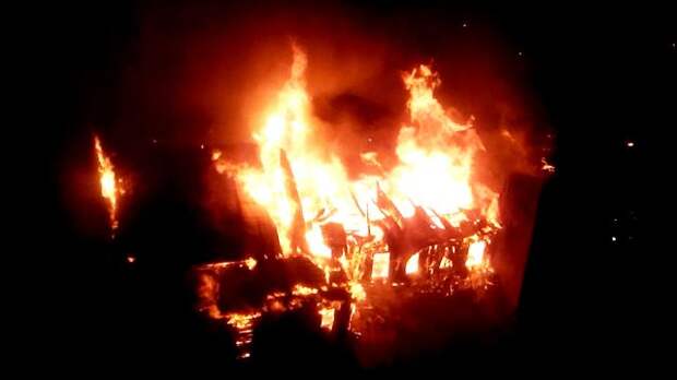 Сильный пожар спалил дотла двухэтажный дом в Москве. Здание оказалось расселенным.