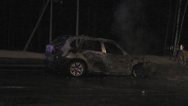 Источники РЕН ТВ сообщают, что на 4-м километре Калужского шоссе произошло ДТП, в результате которого сгорела элитная иномарка BMW X5.