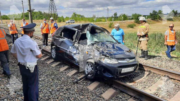 Лекговушка столкнулась с грузовым поездом на переезде в Волгоградской области. Инцидент произошел у станции Соломатино.