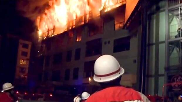 Пламя охватило три верхних этажа здания, где находились медицинские и косметические магазины, а также торговые ряды с одеждой и текстилем.