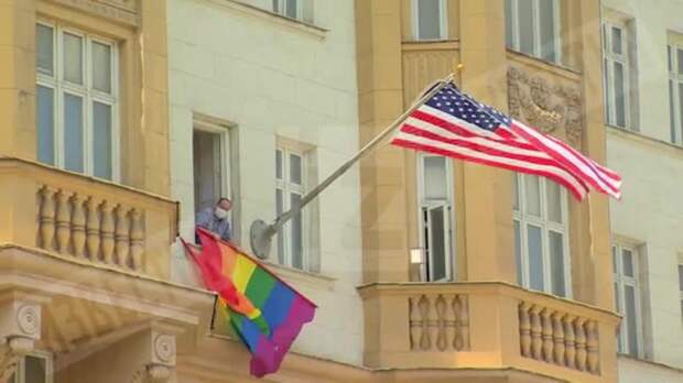 ЛГБТ-флаг вновь вывесили на здании посольства США в Москве.