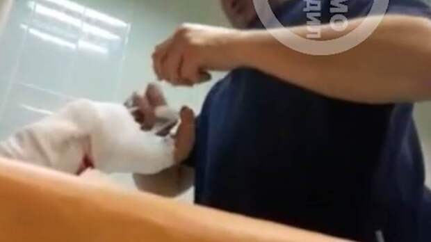 На кадрах видно, что медик оказал мужчине первую помощь - его рука забинтована. Однако в дальнейшем он попросил у пациента предоставить полис страхования.