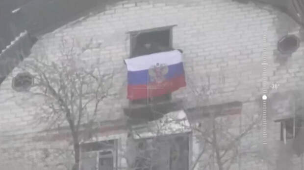 Минобороны РФ поделилось кадрами водружения российского флага в населенном пункте Подолы Харьковской области.